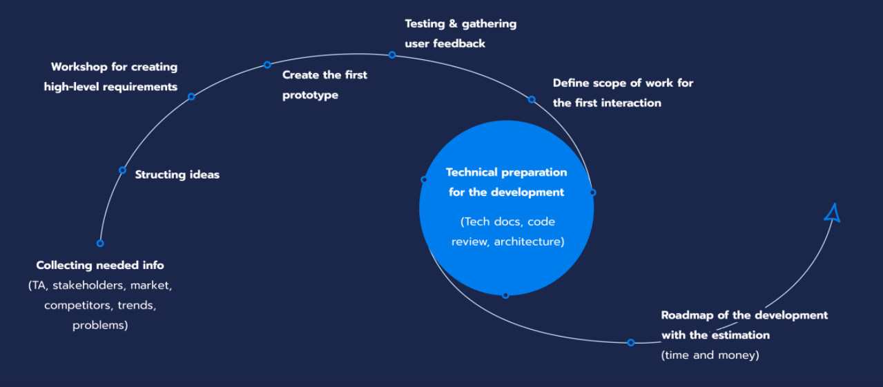 The discovery process begins with gathering detailed requirements from stakeholders to understand the specific needs and challenges of your business. This involves in-depth discussions, surveys, and analysis to capture all necessary details. Once the requirements are gathered, they are translated into detailed specifications, outlining the features, functionalities, and integrations needed.