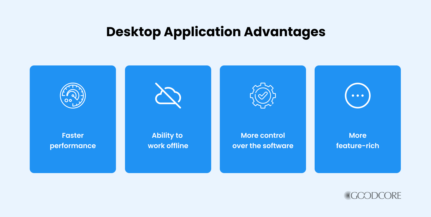 - Offline capabilities – a fundamental advantage of desktop apps is their ability to function without an Internet connection. For industries where connectivity is erratic or non-existent, such as remote fieldwork or specialised industrial environments, this can be a decisive factor.
