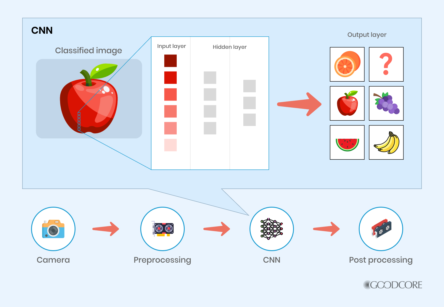 CNNs use labeled data during training to refine their predictions. As the layers go deeper, the model builds a more detailed understanding of the image. CNNs are widely used in tasks like image classification, facial recognition, medical imaging, and object detection.